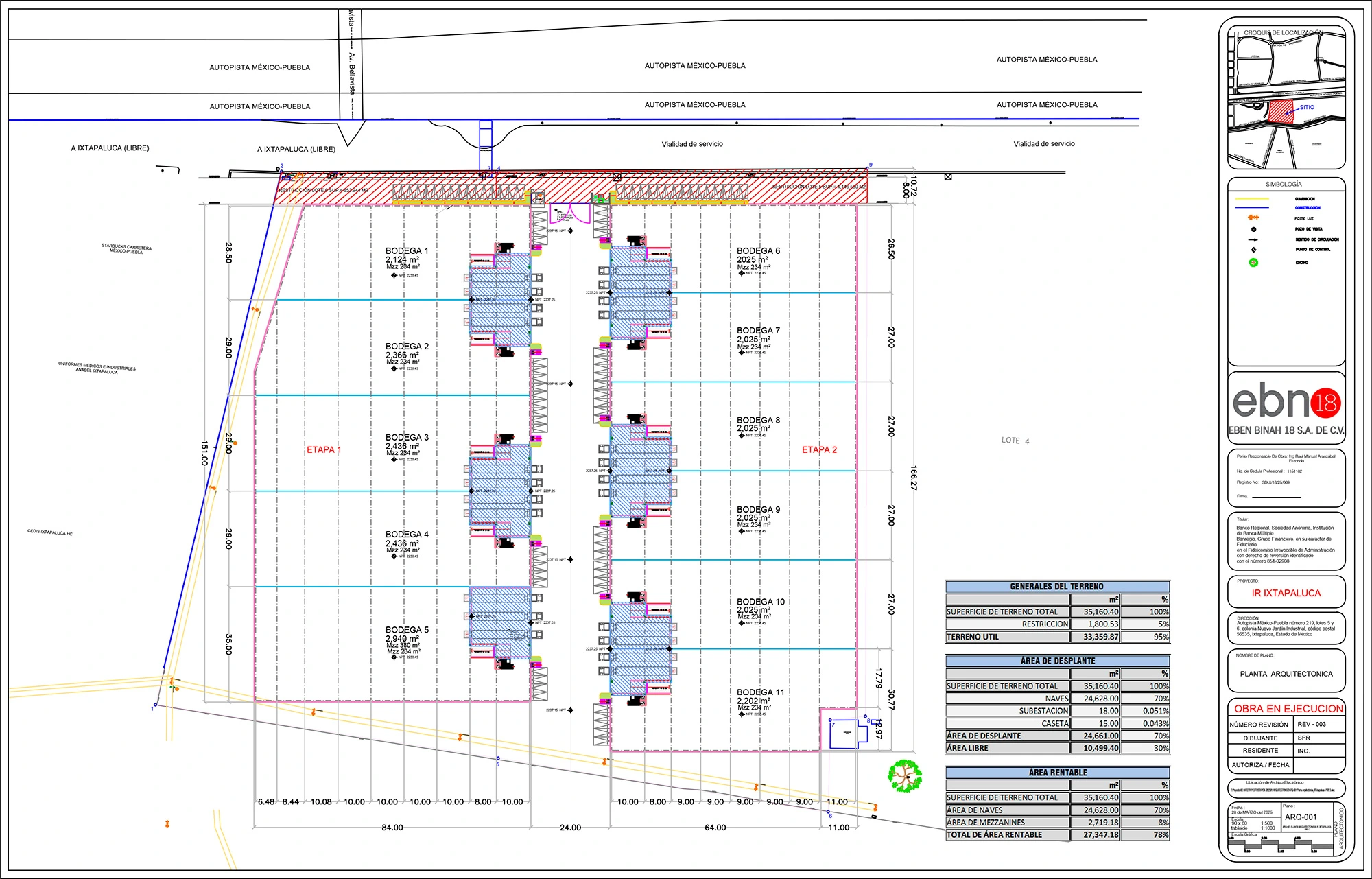 El complejo contará con 11 bodegas de almacén con superficies desde 1,200 m² hasta 23,000 m², cada una equipada con baños, cajones de estacionamiento y opción de mezzanine.
